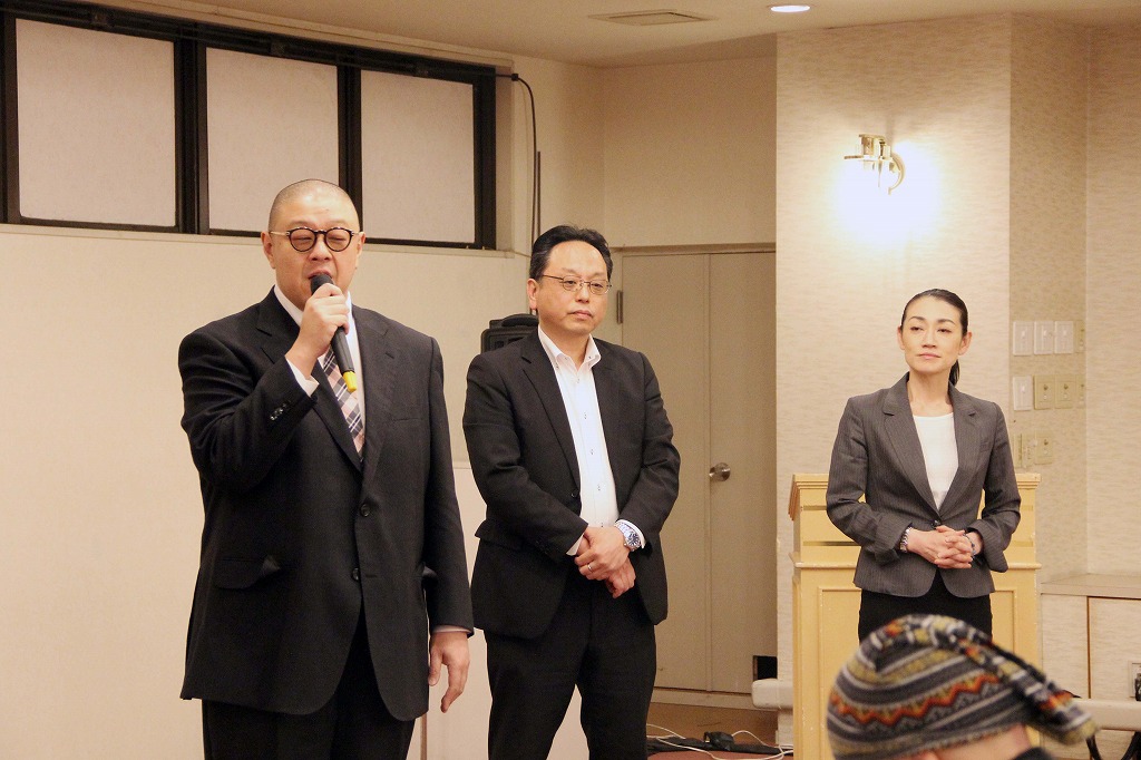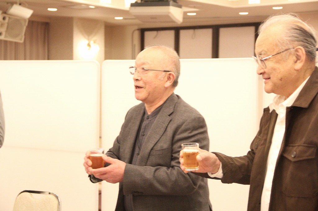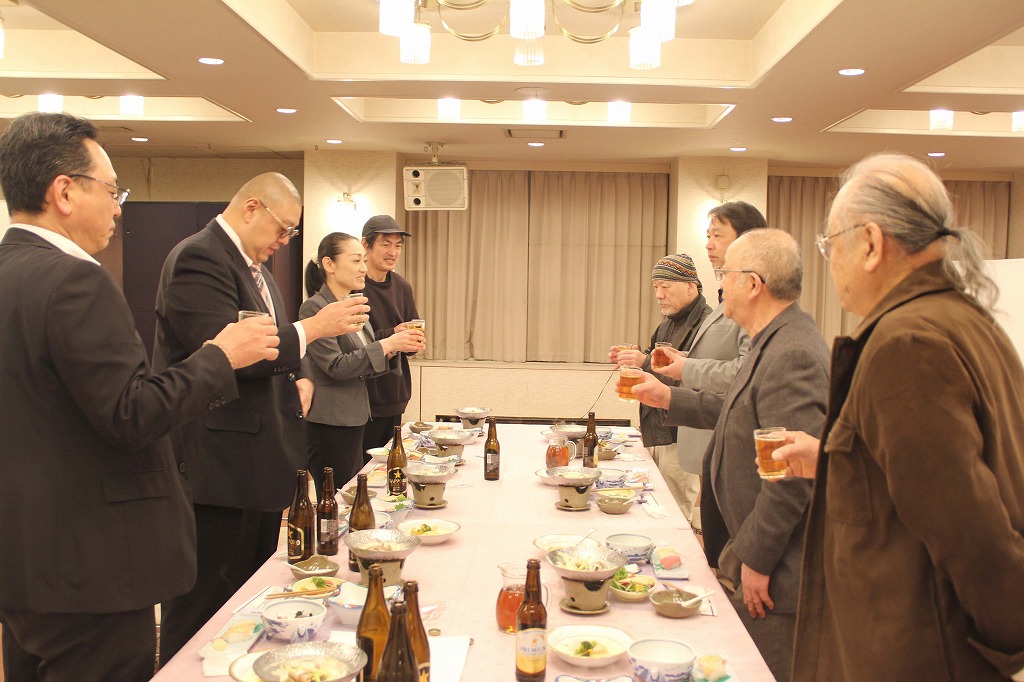 懇親会です。乾杯の音頭は、会津若松飲食業組合の五十嵐組合長より。これからも当会を見守ってください!
